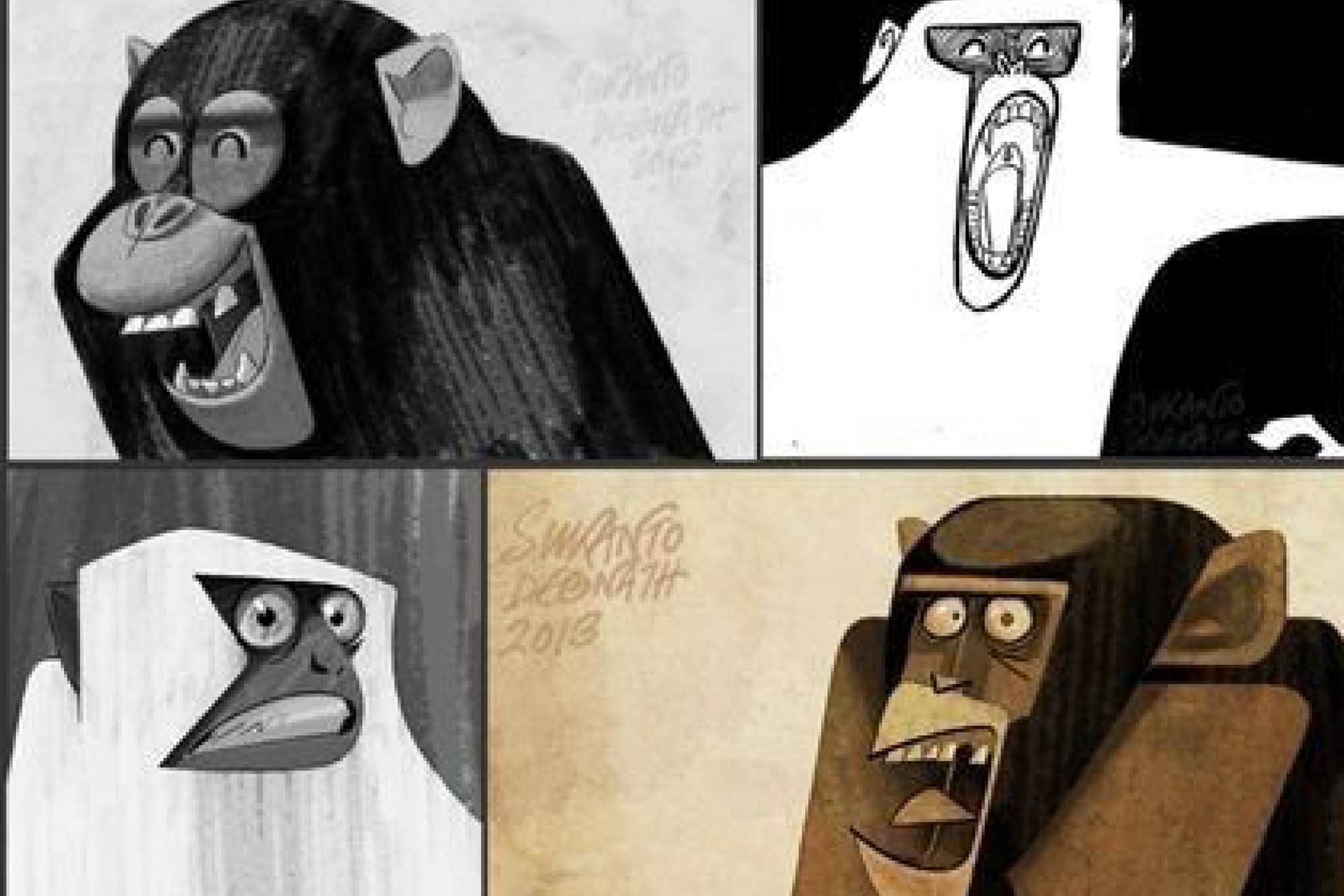 This approach focused on the chaotic feeling and applied that feeling onto the hair of the ape with an exaggerated facial expression wearing a hat, which symbolised outdoor activities.