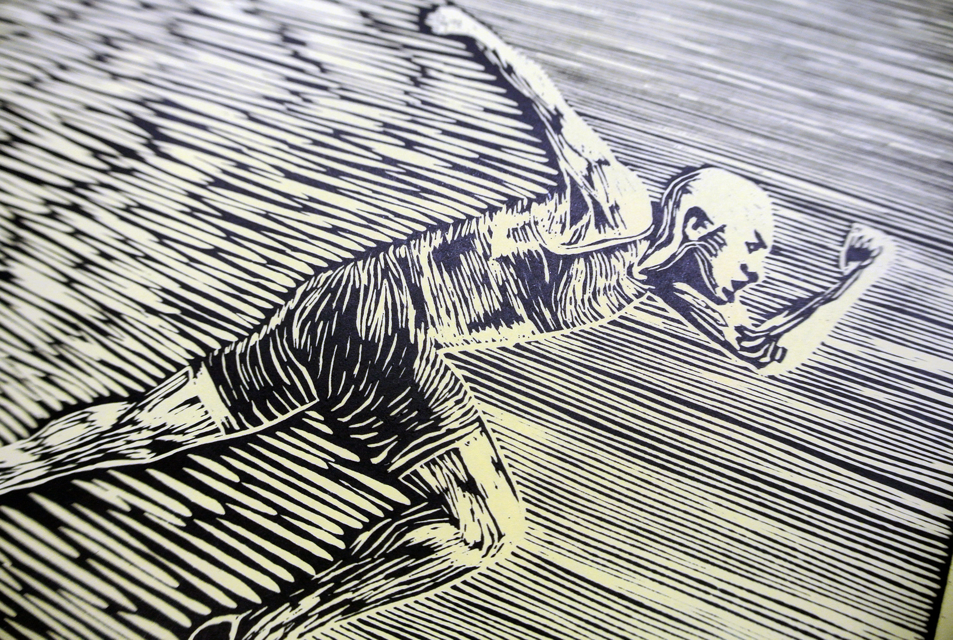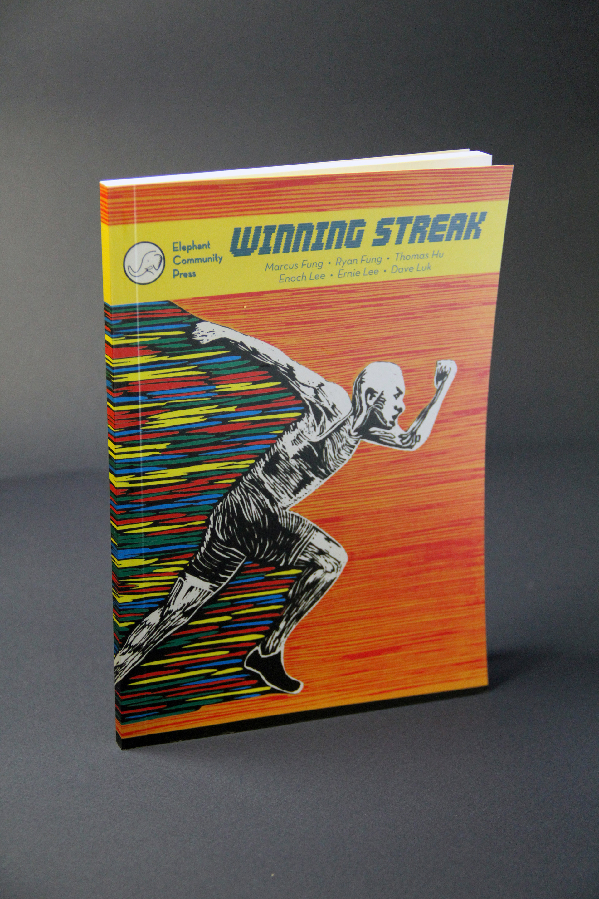 Using print-making as the main graphic for this book cover for the Elephant Community Press, this book is all about sports stories.